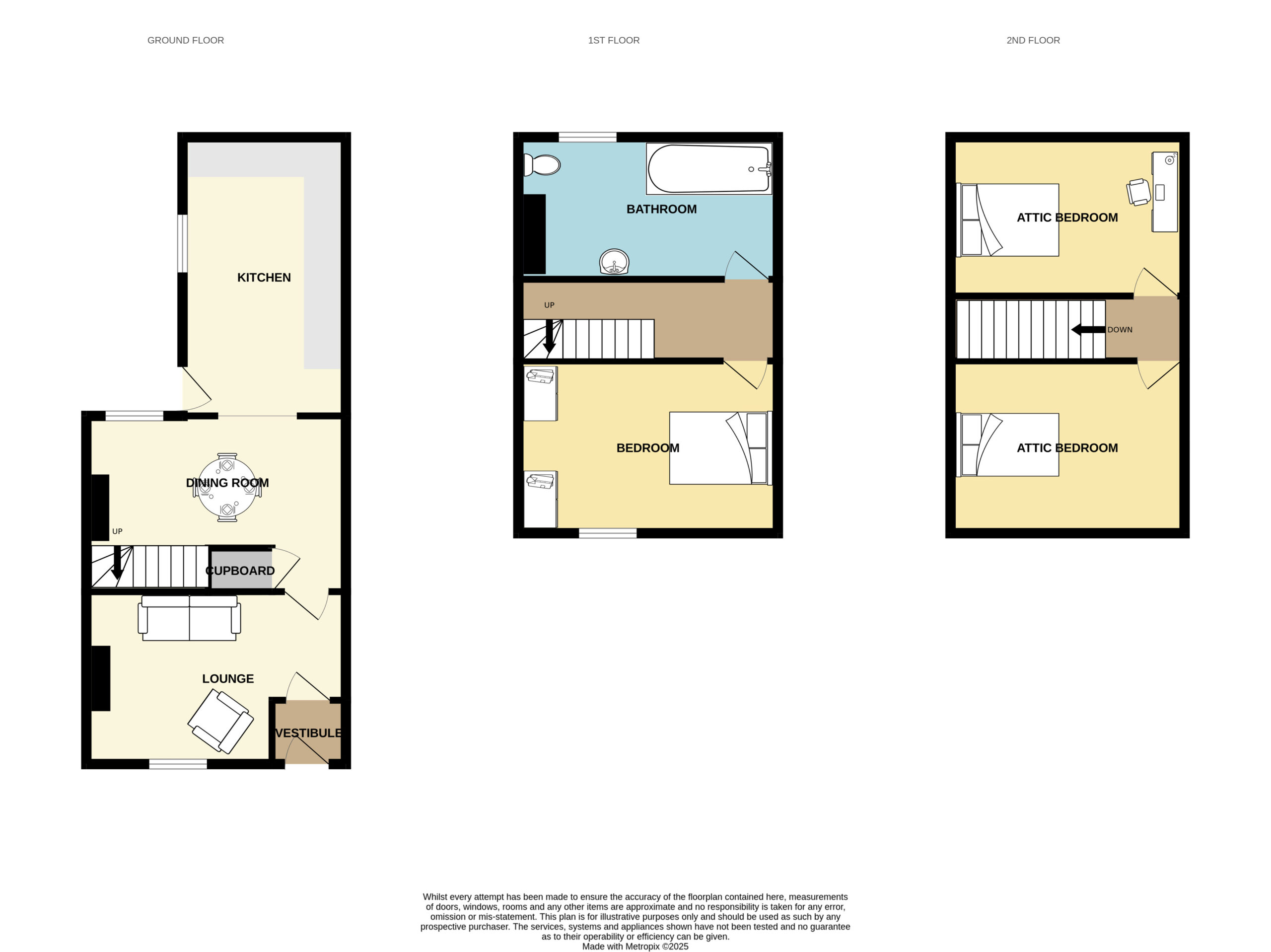 The second floor hosts two additional attic bedrooms, both offering versatility — perfect for children, guests, hobby rooms or a dedicated home office.