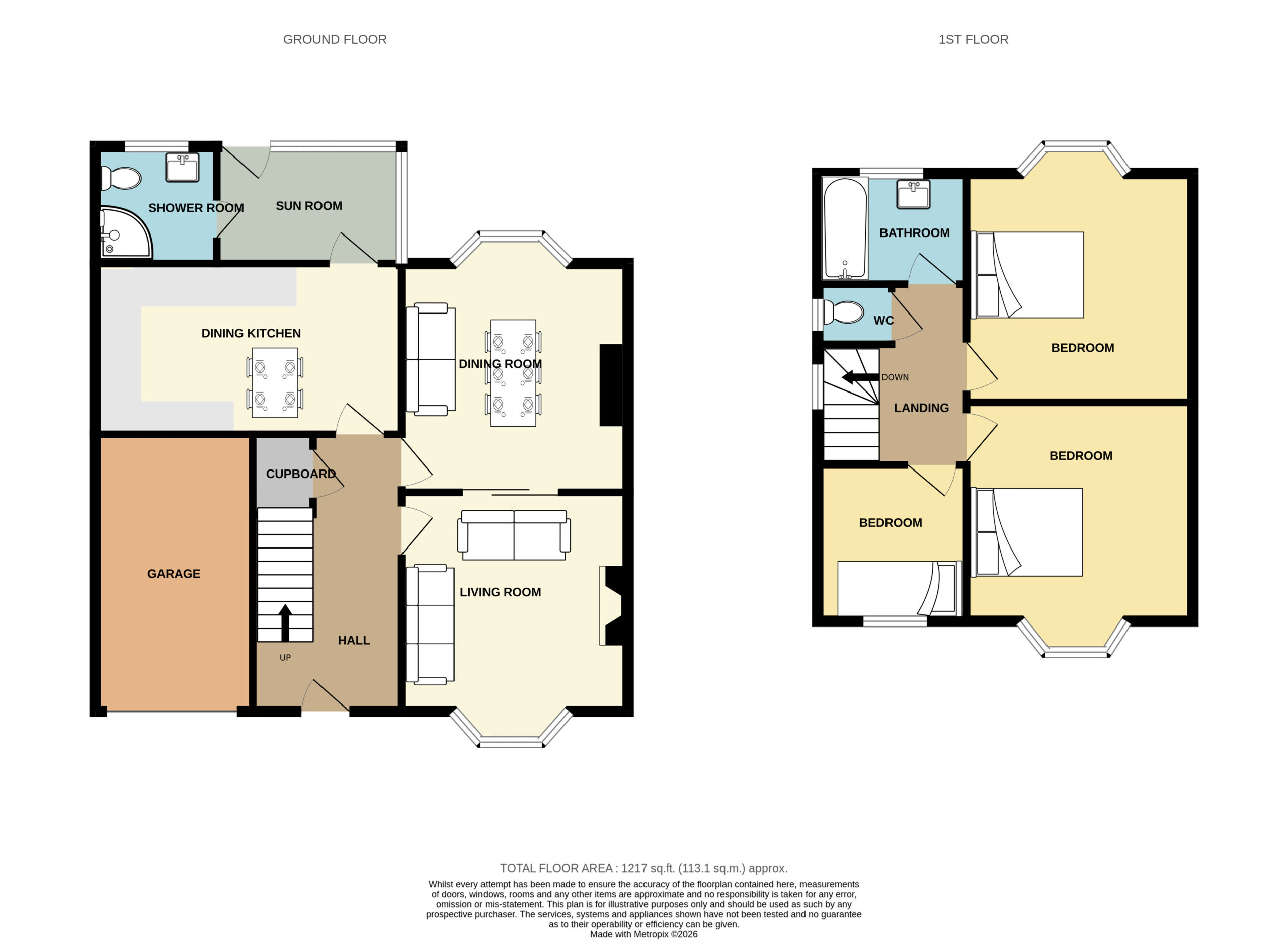 To the first floor are two particularly generous double bedrooms, both offering excellent space for family living, along with a well-proportioned single bedroom. The first floor is completed by a family bathroom and a separate WC, a valuable feature for busy households.