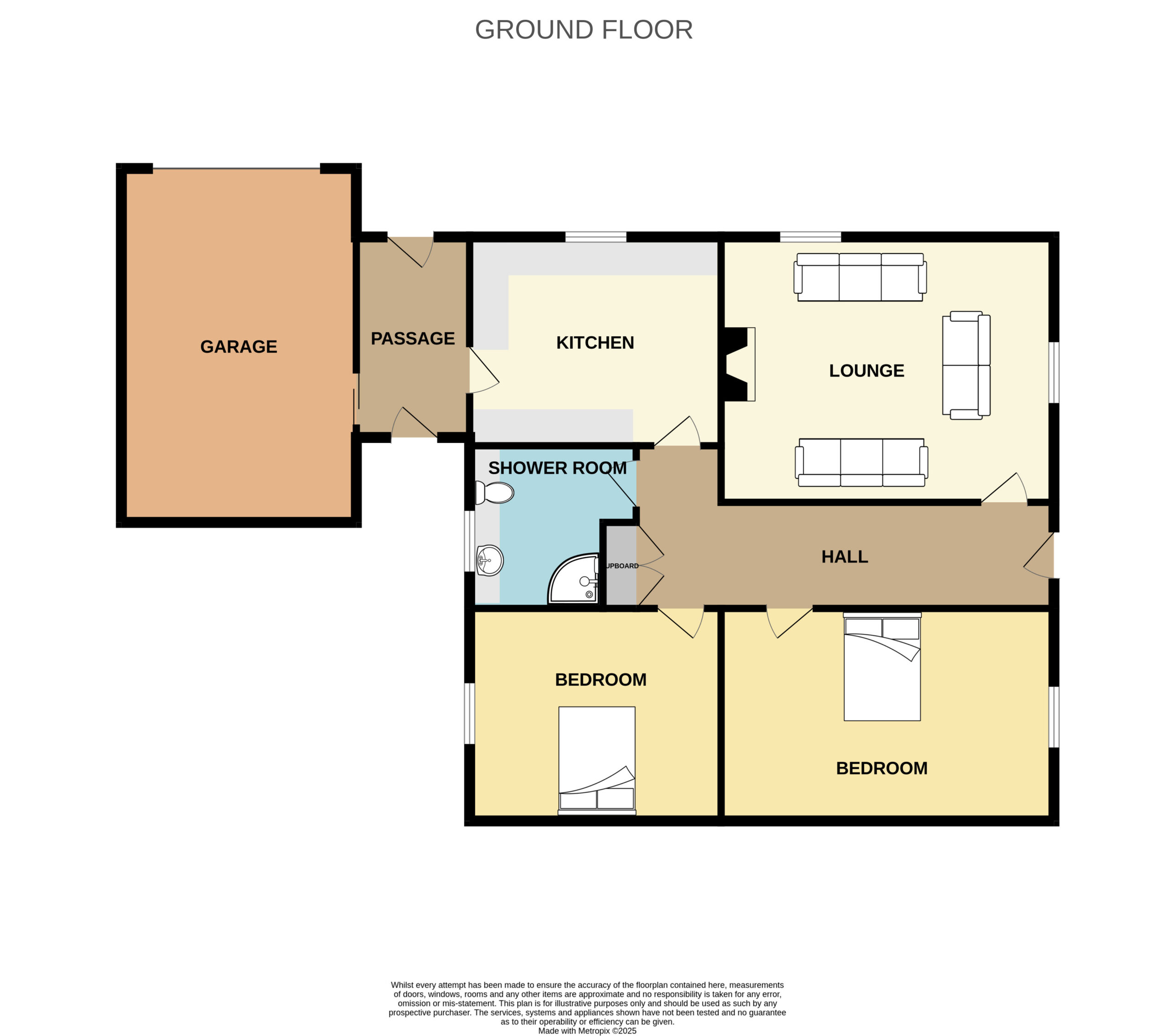Inside, the accommodation comprises a entrance hall leading to a bright and spacious lounge, ideal for relaxing or entertaining. The fitted kitchen offers plenty of storage and workspace, while the two double bedrooms provide comfortable and versatile living options. The modern shower room completes the internal layout.