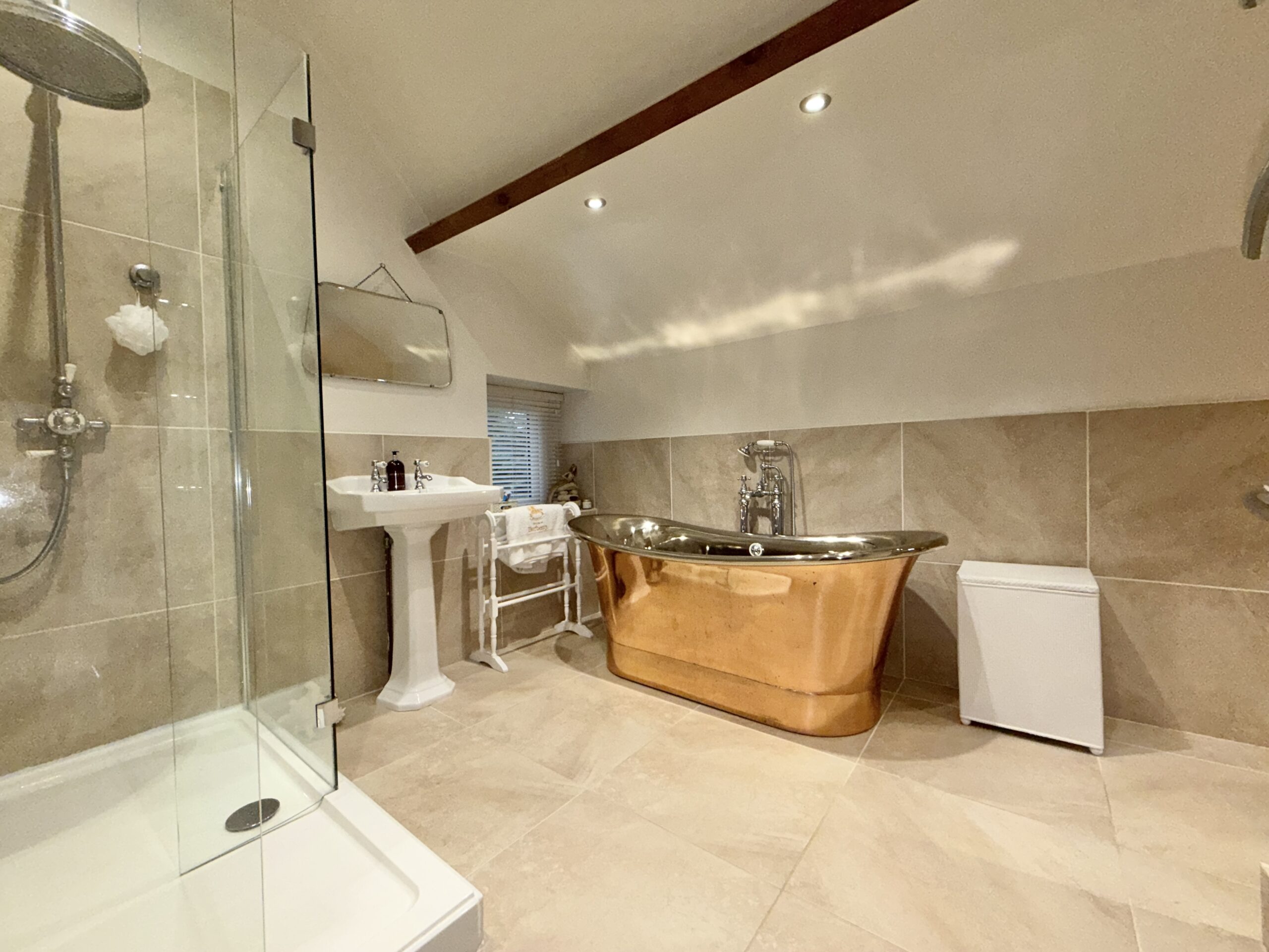 Upstairs, the property offers three generous double bedrooms, all beautifully presented, along with a luxurious Heritage Granley four-piece family bathroom featuring a stunning Nickel & Copper Roll Top Bath with freestanding chrome taps & shower attachment and a walk in shower with extra large rainfall shower head and Under floor heating - making this the perfect place to unwind at the end of the day.