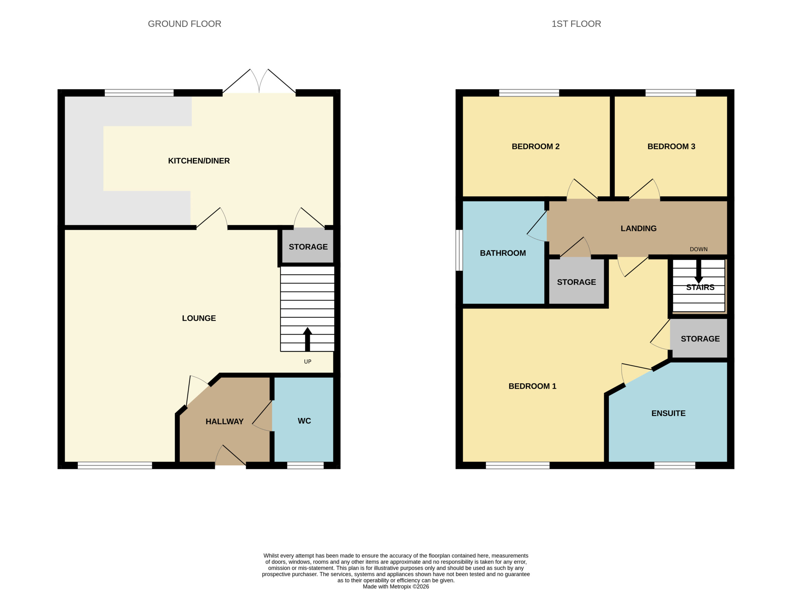 Upstairs, the home offers three well-proportioned bedrooms, including a principal bedroom with its own en-suite shower room, alongside a modern family bathroom. Further benefits include a convenient ground floor WC, making the layout perfectly suited to modern family life.