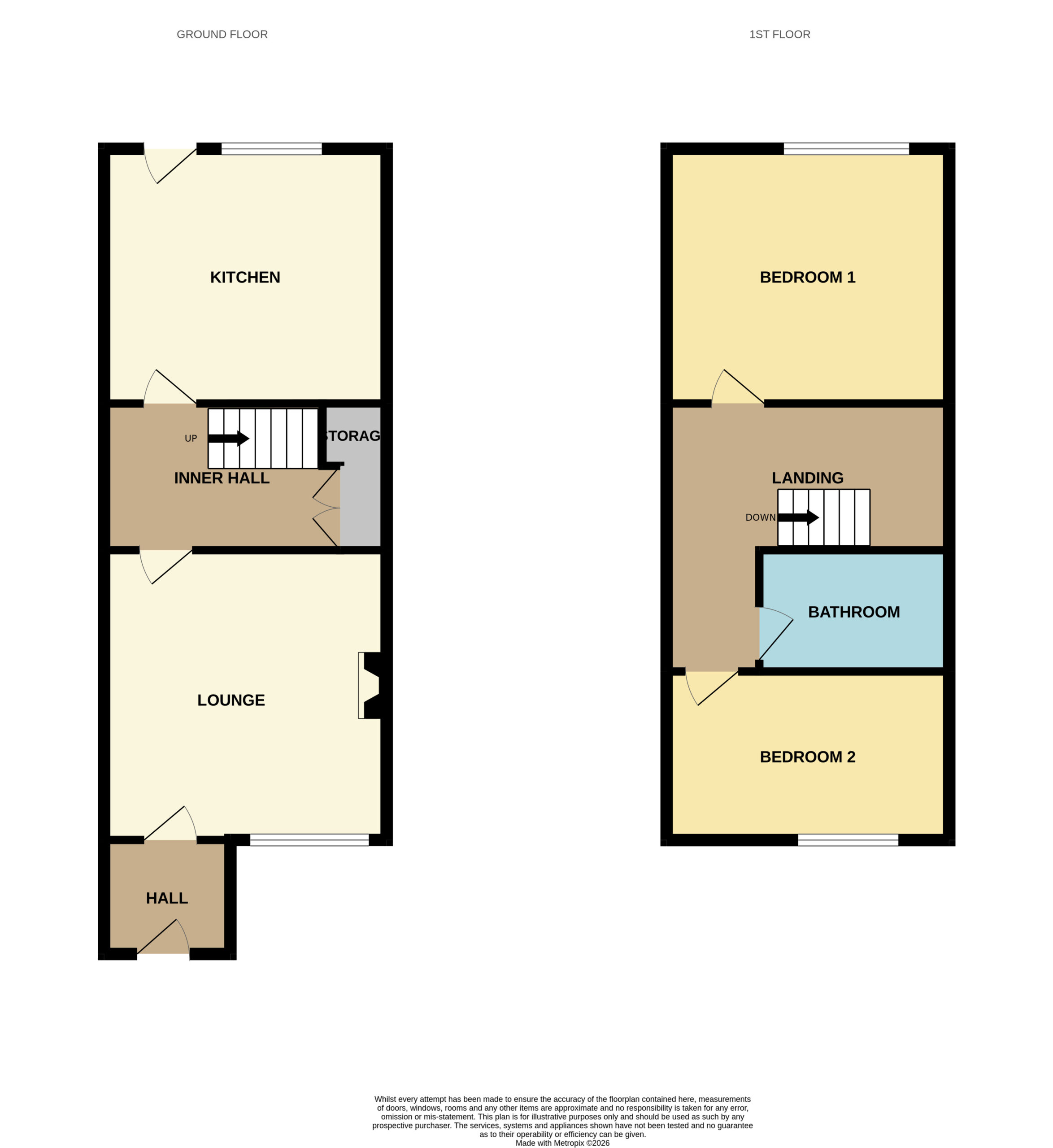 To the first floor are two well-proportioned bedrooms and a modern bathroom suite. The property further benefits from double glazing and central heating, ensuring year-round comfort.