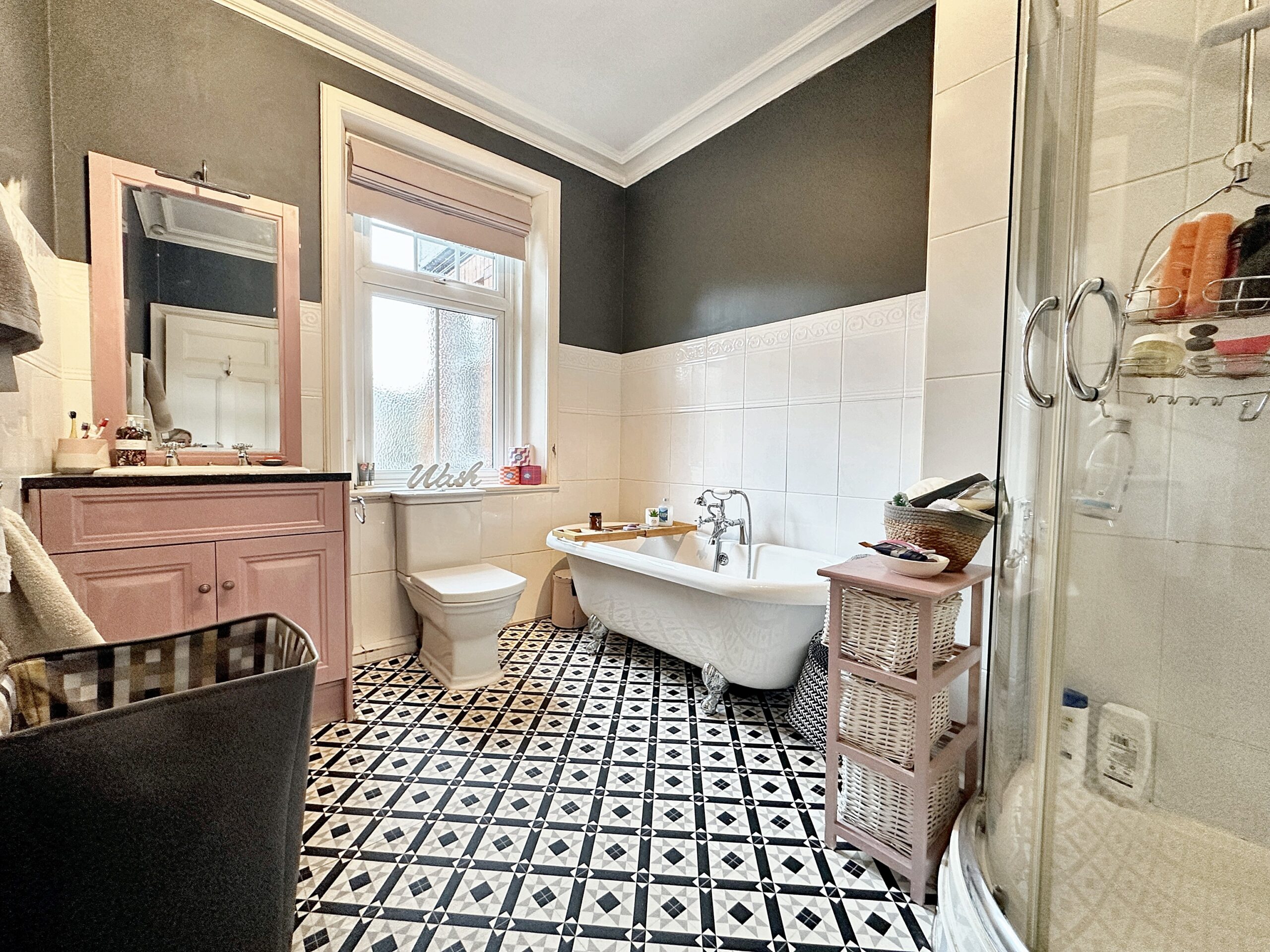 The first floor hosts three generously sized double bedrooms, all retaining a sense of elegance and light, along with the family bathroom. Ascend to the second floor and you’ll find two further double bedrooms and a modern en-suite shower room, making this an incredibly flexible layout—ideal for growing families, multi-generational living, or those needing additional guest or office space.