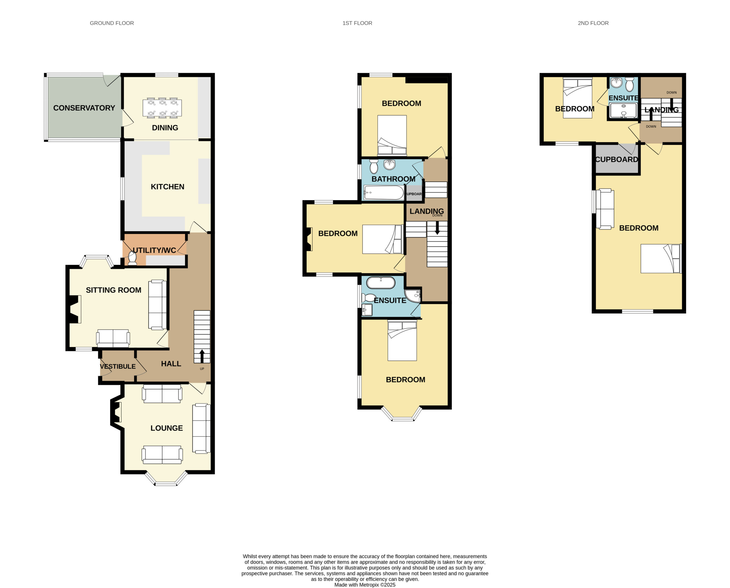 - Five generously sized double bedrooms spread over three floors, offering flexible living space