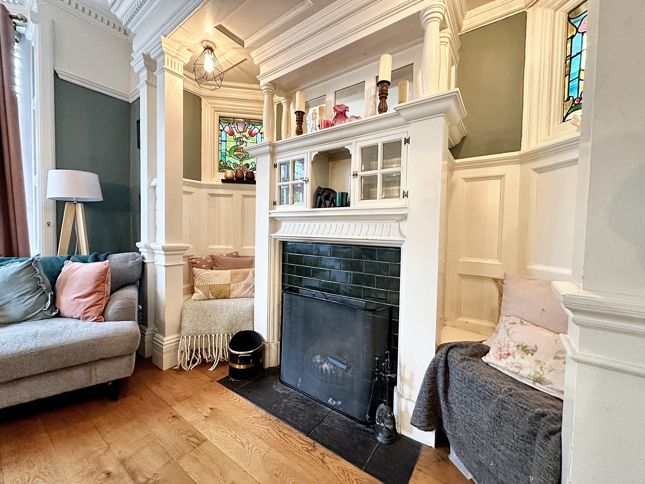 - Beautifully preserved Edwardian features, including original fireplaces, stained glass windows, decorative ceiling panelling