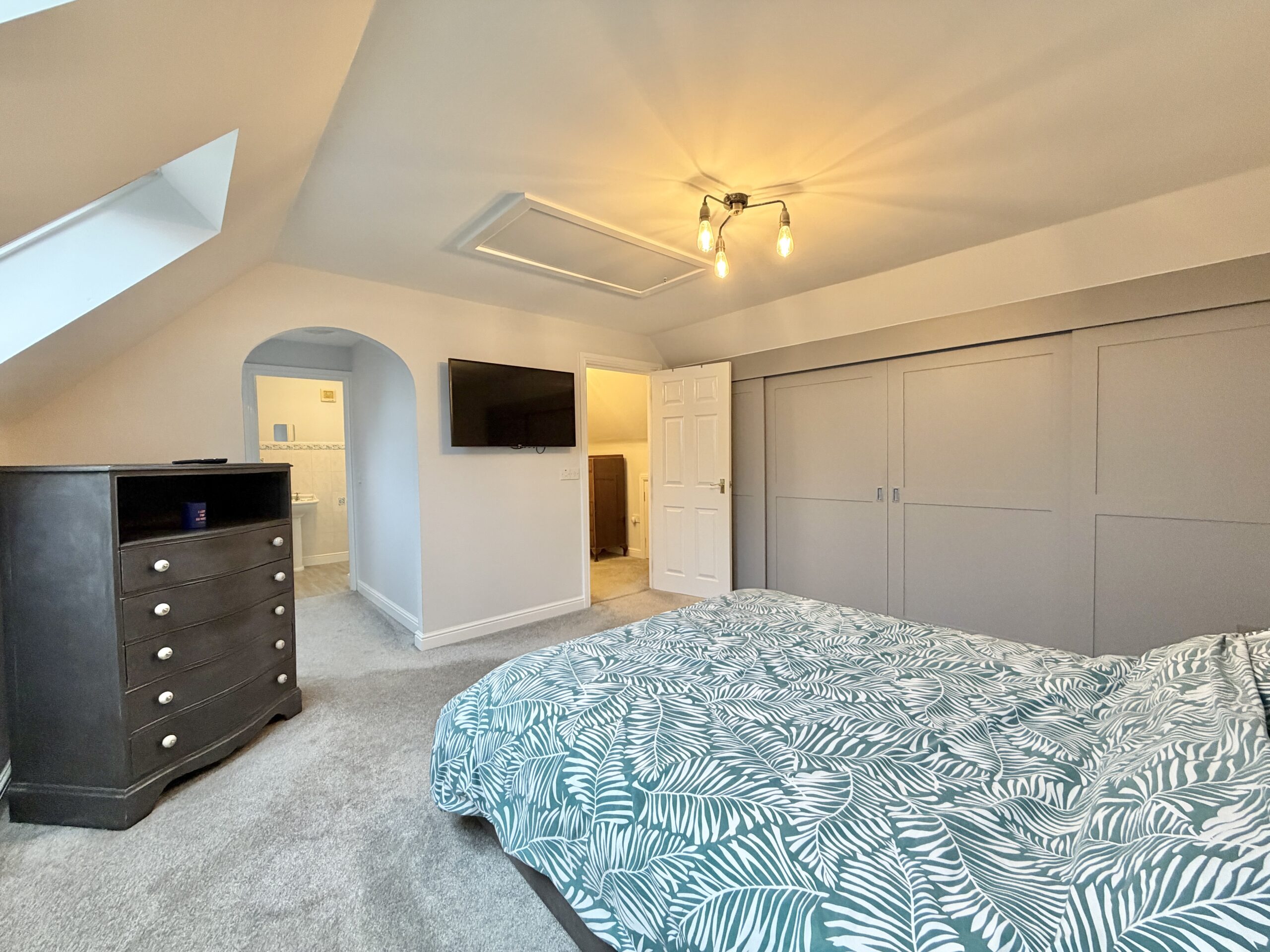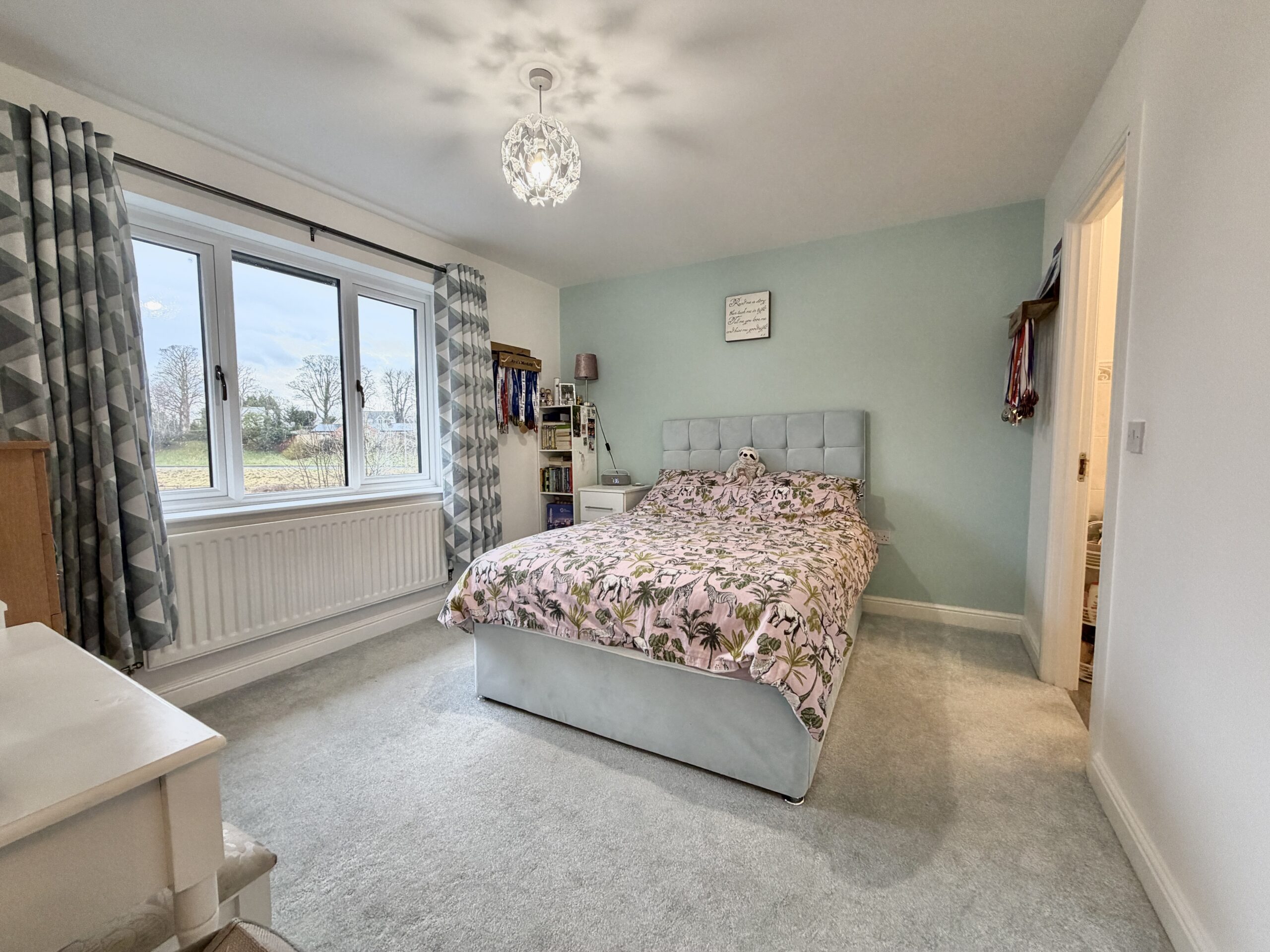 The first floor offers four generous bedrooms, including one with an en-suite shower room, together with a well-appointed family bathroom. The second floor is dedicated to a superb primary bedroom suite, enjoying lovely open views, fitted storage, a dressing area, and a stylish en-suite shower room, creating a peaceful and private retreat.