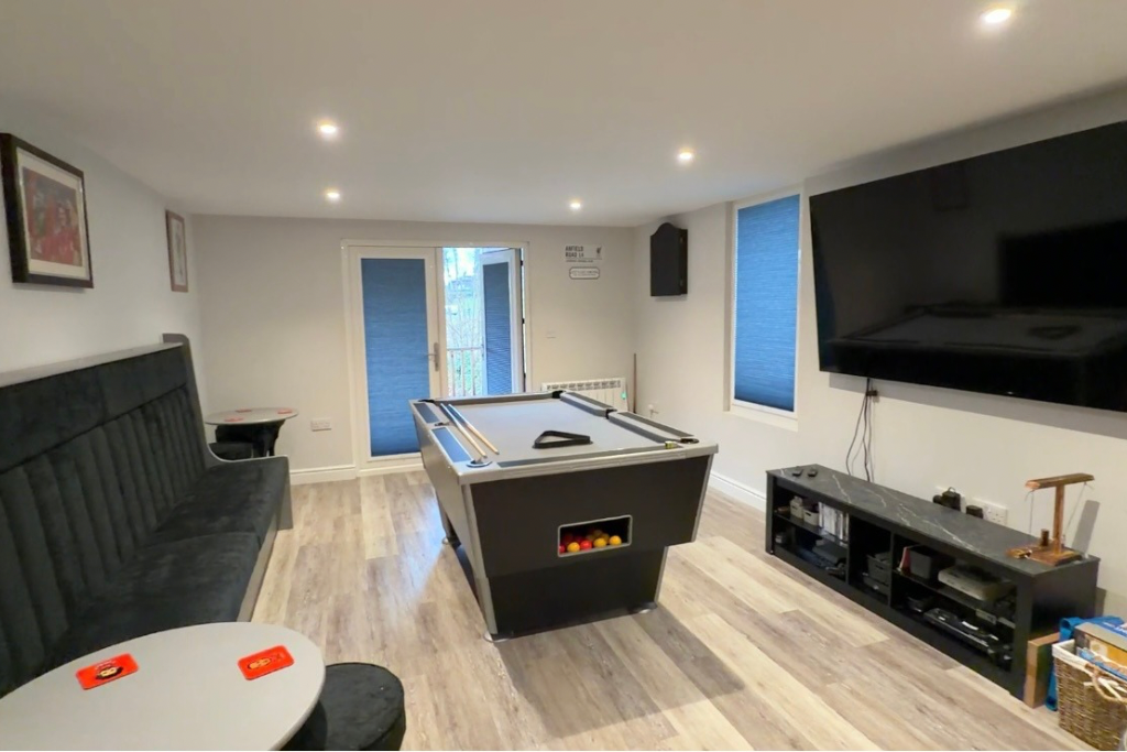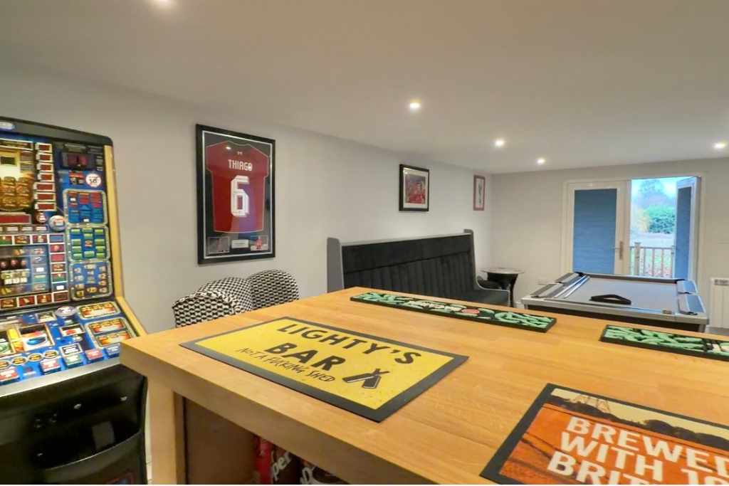 Externally, the property benefits from a private lawned rear garden, ideal for families and outdoor enjoyment. A standout feature is the outside bar, a real WOW factor — perfect for entertaining friends and family, summer gatherings, or alternatively as a home office, studio, or creative space.