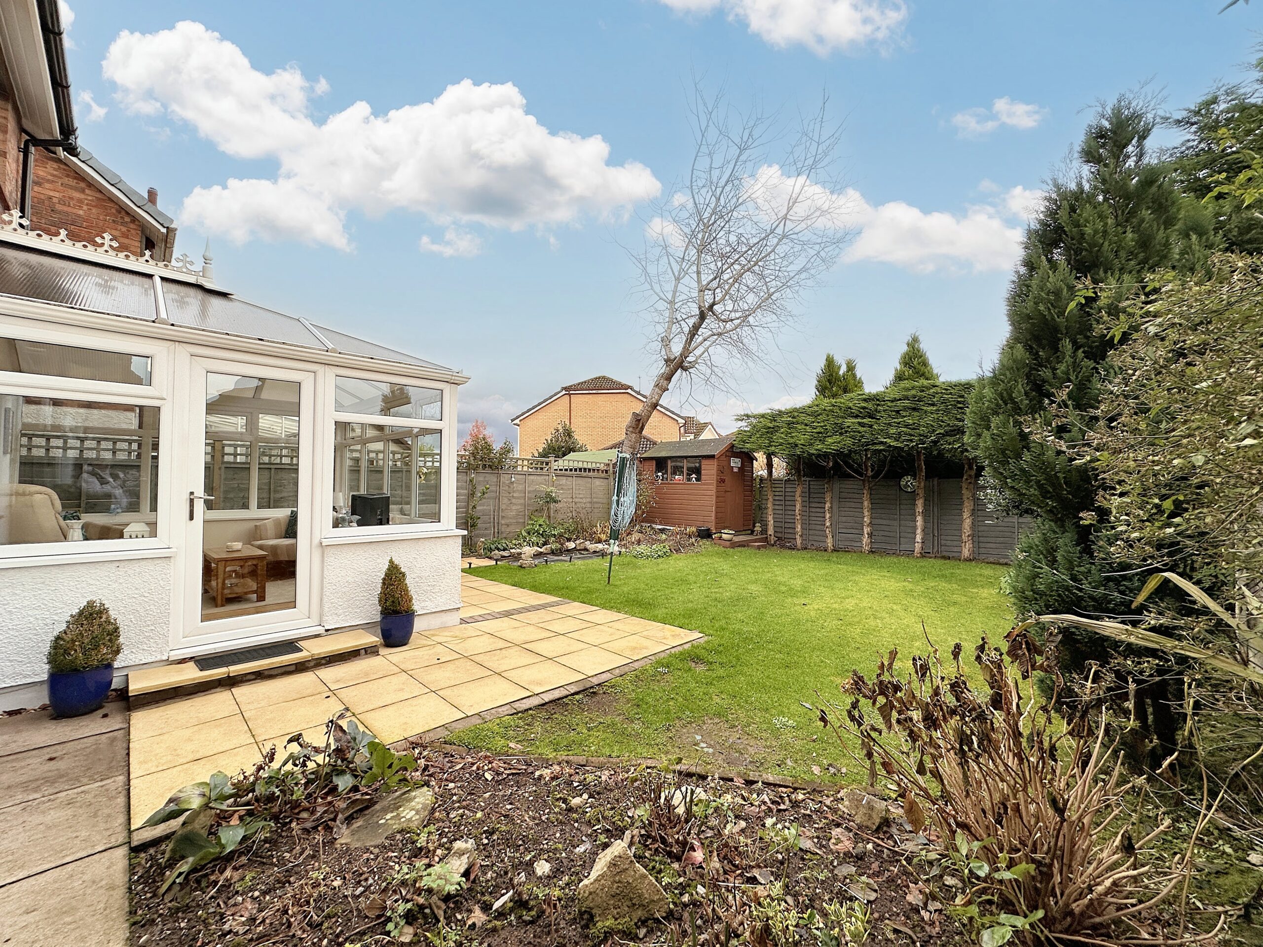 Upon entering, the property welcomes you with an entrance porch leading into a bright and spacious hallway. The contemporary kitchen has been thoughtfully designed and comes complete with integrated fridge freezer, electric oven and grill, and a sleek induction hob. The lounge enjoys lovely views over the rear garden, creating a calm and inviting space to relax, while the dining room opens seamlessly into the conservatory. This additional living space is ideal for year-round enjoyment, offering a warm spot to unwind, entertain or simply enjoy the garden outlook.