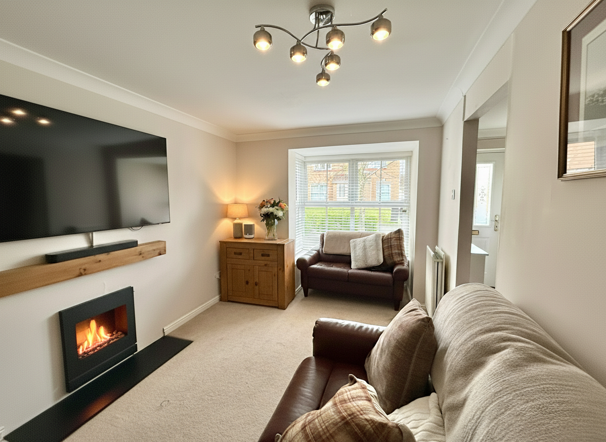 The accommodation begins with a welcoming entrance hall and ground floor WC. To the front of the property is a comfortable lounge featuring an gas fire, while the converted garage provides a flexible space currently used as a double bedroom, ideal for guests, home working, or multi-generational living.